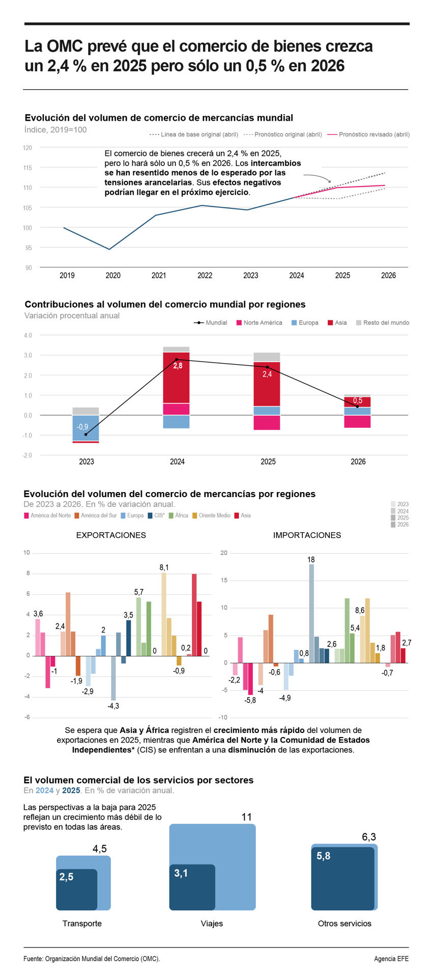 Ginebra, 7 oct (EFECOM).- El comercio global de bienes crecerá un 2,4 % en 2025 pero lo hará …